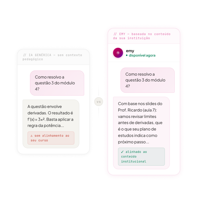 InteligenteOrienta o estudante com base no conteúdo institucional, tira dúvidas e apoia a aprendizagem.→Respostas contextualizadas
